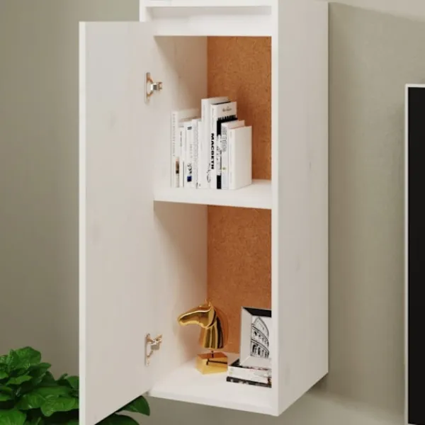 Väggskåpet är tillverkat av massivt furuträ, vilket garanterar robusthet, hållbarhet och långvarig service. Väggenheten fungerar som den perfekta platsen att placera föremål som böcker, samlarobjekt, ornament och mer. Skåpet förvandlar en tom vägg till en designfunktion. Dessutom är det flytande skåpet lätt att rengöra med en fuktig trasa.