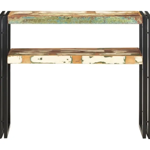 - Material: Massivt återvunnet trä med naturlig yta, pulverlackerat järn