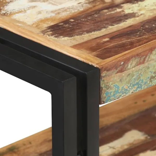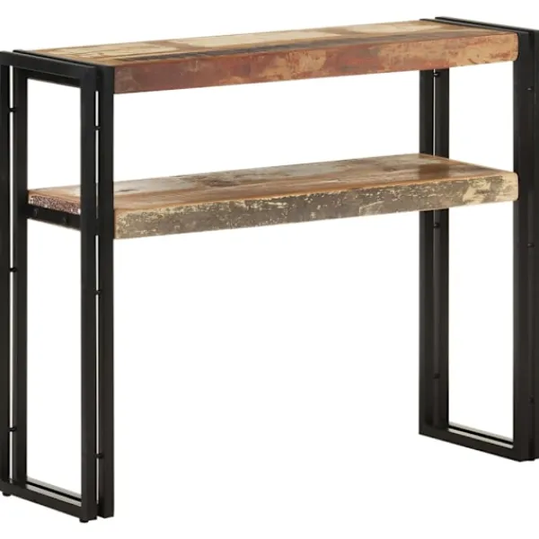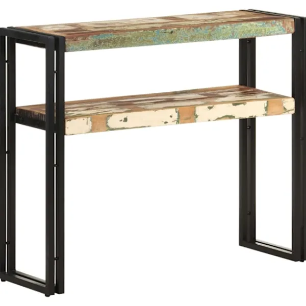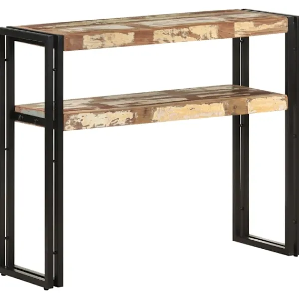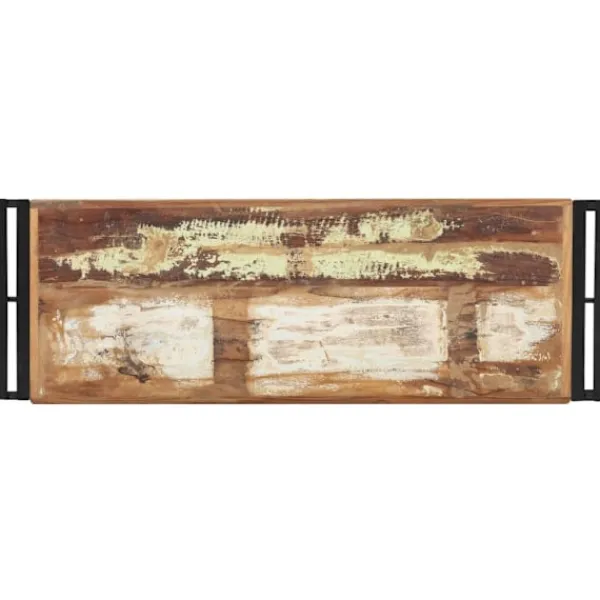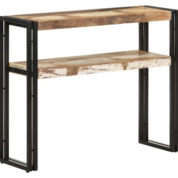 Detta avlastningsbord i trä blir ett tidlöst blickfång i ditt rum. Det är perfekt för förvaring av böcker, tidskrifter och andra saker tack vare sina två långa hyllor. Skänken är tillverkad i massivt återvunnet trä som kan bestå av olika typer av trä såsom teak, lövträ, tropiskt trä, mangoträ osv. Den har ben i järn, vilket gör den mycket stabil och hållbar för många års användning. Det skickliga hantverket garanterar att varje steg i processen utförs med största omsorg. Viktigt: Träets färger och ådringar kan variera från möbel till möbel vilket gör varje möbel unik och något annorlunda från nästa. Leveransen är slumpartad, vilket säkerställer varje produkts exklusivitet och individualitet.