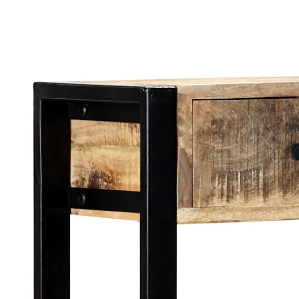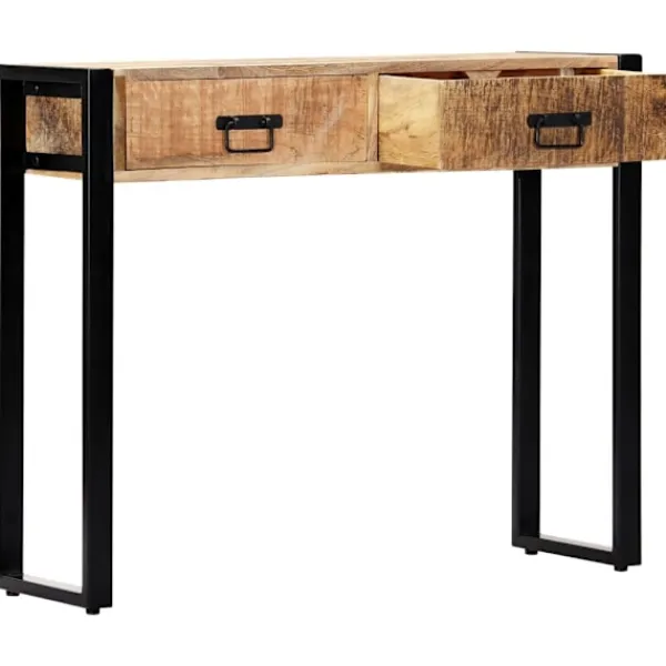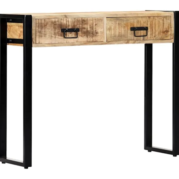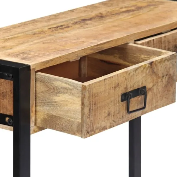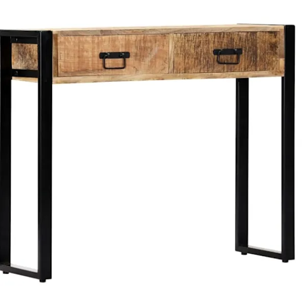 Om du vill tillföra en rustik och industriell charm till din inredning blir vårt avlastningsbord av massivt trä ett perfekt val. Detta bord är tillverkat av massivt mangoträ, ett lövträ med täta ådringar. Grovt mangoträ är starkt nog att bära tung vikt och är även tåligt och hållbart. Det vackert designade hallbordet är ytterst stabilt, hållbart och iögonfallande. Det skickliga hantverket och de vackra träådringarna gör varje möbel unik och något olik de andra. Bordet har dessutom 2 lådor med gott om plats för att förvara dina ägodelar och håla rummet städat. Obs: Färger och träådringar kan variera från möbel till möbel, vilket gör varje bord unikt; leveransen är slumpmässig.