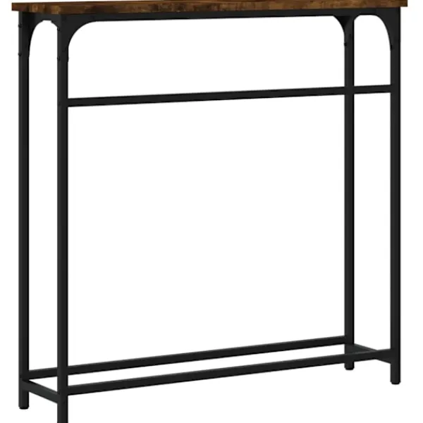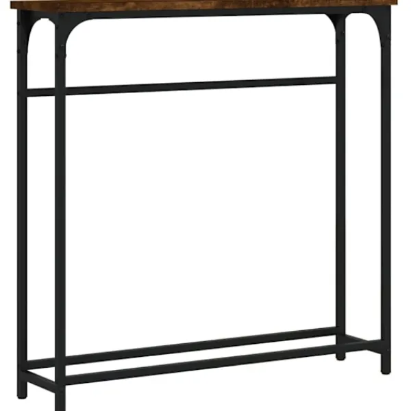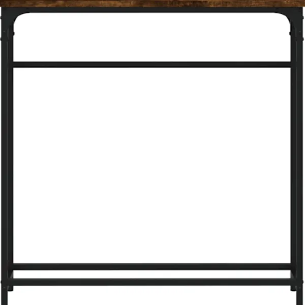Få en elegant känsla i hallen, vardagsrummet eller entrén med detta snygga avlastningsbord. Hållbart material: Det konstruerade träet är av exceptionell kvalitet med slät yta och är också starkt, stabilt och fuktbeständigt. Med konstruerat trä som byggmaterial är soffbordet lätt att rengöra.Robust bordsskiva: Hallbordet är perfekt för att placera dina inramade foton, krukväxter och andra dekorativa föremål.Justerbara fötter: Fyra justerbara fötter med plasttassar håller hallbordet balanserat på ojämnt underlag och ökar stabiliteten.Metallram: Metallramen lägger till en industriell stil till din interiör samtidigt som den garanterar hållbarhet och stabilitet. Varning:För att förhindra att den välter måste denna produkt användas tillsammans med det medföljande väggfästet.