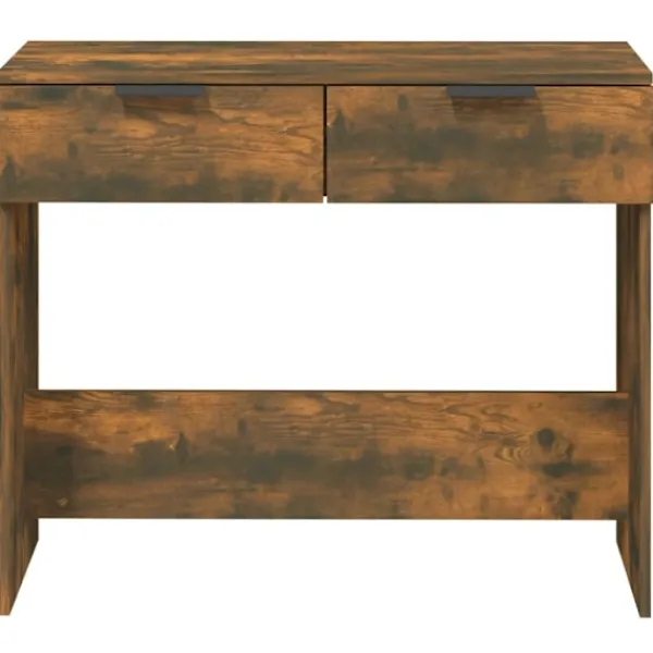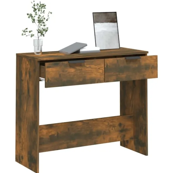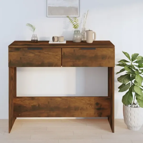 Det här strömlinjeformade konsolbordets mångsidiga design bidrar till extra förvaring i din entré, vardagsrum eller hall. Stabilt material: Det konstruerade träet är av exceptionell kvalitet med slät yta och är också starkt, stabilt och fuktbeständigt.Förvaringsutrymme: Hallbordet är utrustat med 2 lådor för att förvara dina nycklar, kort, glasögon eller några ofta använda föremål.Rymlig ovansida: Detta sidobord har en rymlig ovansida med gott om utrymme för att lägga dina viktiga föremål, som dekorativa ornament, en vas med blommor, inramade foton etc. Varning:För att förhindra att den välter måste denna produkt användas med den medföljande monteringsanordningen för vägg Observera:Varje produkt levereras med en monteringsmanual i lådan för enkel montering.