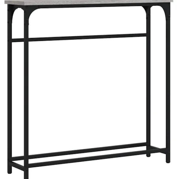 Få en elegant känsla i hallen, vardagsrummet eller entrén med detta snygga avlastningsbord. Hållbart material: Det konstruerade träet är av exceptionell kvalitet med slät yta och är också starkt, stabilt och fuktbeständigt. Med konstruerat trä som byggmaterial är soffbordet lätt att rengöra.Robust bordsskiva: Hallbordet är perfekt för att placera dina inramade foton, krukväxter och andra dekorativa föremål.Justerbara fötter: Fyra justerbara fötter med plasttassar håller hallbordet balanserat på ojämnt underlag och ökar stabiliteten.Metallram: Metallramen lägger till en industriell stil till din interiör samtidigt som den garanterar hållbarhet och stabilitet. Varning:För att förhindra att den välter måste denna produkt användas tillsammans med det medföljande väggfästet.