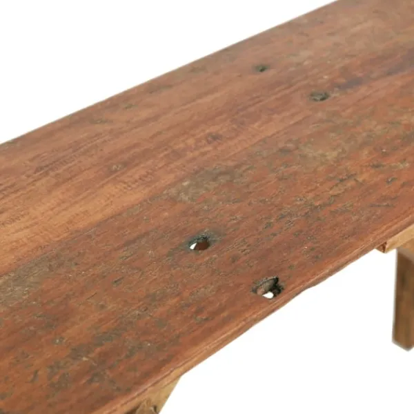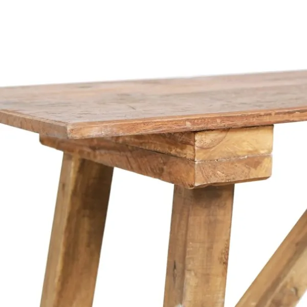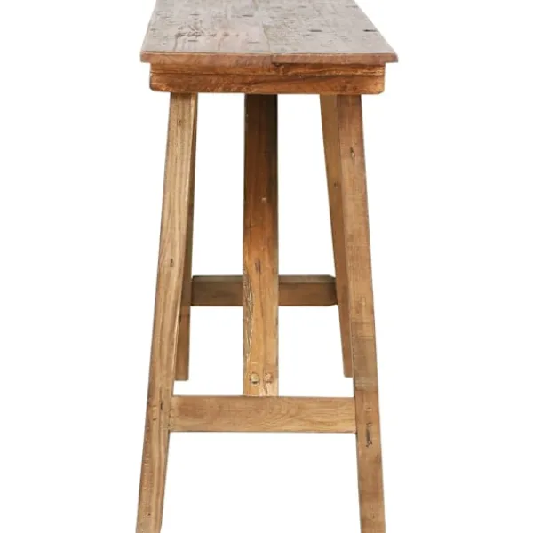 Introducera en rustik känsla i din inredning med vårt konsolbord i massivt återvunnet trä! Dess bordsskiva i lövträ är en stabil och säker yta för att placera dina glas, vaser, frukter samt olika andra prydnader. Konsolbordet är tillverkad i massivt återvunnet trä som har samlats in från fallna träd, lastbilar i trä, båtar, reglar, golv och balkar från gamla rivna byggnader och kan bestå av olika typer av trä såsom mahogny, furu, teak, bok, ek ceder, mangoträ, akacia med mera. Detta innebär att det återvunna träet behåller egenskaperna hos dessa olika träslag och du kan hitta spikar, skruvar, håligheter och andra brister, men dessa brister är en indikation på träets rika historia och ger möbeln ett varmt och autentiskt utseende. Vårt konsolbord är enkelt att montera. Viktigt: Färger och fibrer varierar från möbel till möbel, vilket gör varje produkt unik. Leveransen är slumpartad, vilket säkerställer varje produkts exklusivitet och individualitet.