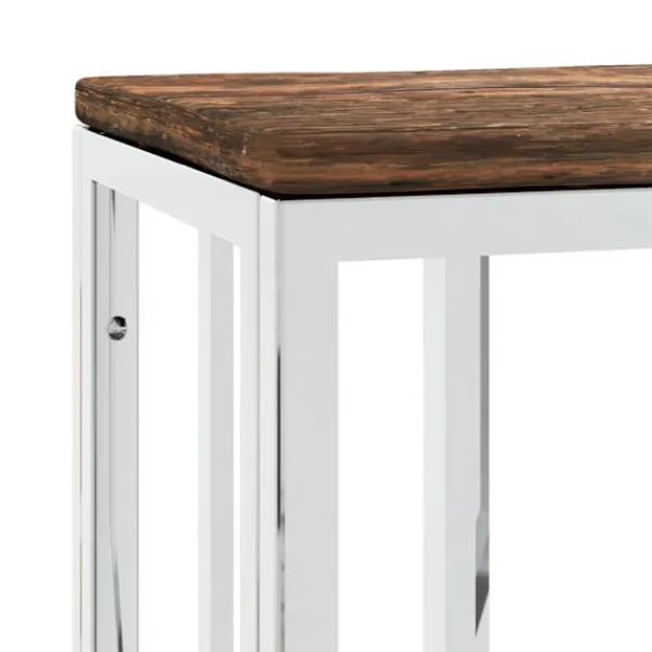 Detta avlastningsbord kombinerar funktionalitet med snygg design och blir ett blickfång i ditt rum. Robust och stabil ram: Detta soffbord har en ram i rostfritt stål som är robust, stabil och motståndskraftig mot korrosion och rost.Massivt återvunnet trä: Massivt återvunnet trä består av återanvänt virke som teak, mangoträ, furu och bok. Dessa träslag är återvunna från gamla byggnader som fabriker, skjul och båtar. Eftersom varje möbel är handgjord kommer färgerna att variera från möbel till möbel.Modern design: Bordet har en enkel och modern design som kompletterar alla vardagsrumsinredningar.Mångsidigt och praktiskt: Detta smala bord fungerar utmärkt som konsolbord, avlastningsbord, lampbord eller hallbord. Den lämpliga storleken gör det perfekt för vardagsrum, sovrum, studierum, balkong, kontor, hall och så vidare.Lätt att sköta: Accentbordet med fläckbeständiga ytor är lätt att torka rent och lätt att hålla snyggt.Bra att känna till:Varje objekt är unikt med variationer i färger och ådringar. Leveransen är slumpmässig, vilket säkerställer varje produkts exklusivitet och individualitet.Varning:För att förhindra att den välter måste denna produkt användas tillsammans med det medföljande väggfästet.