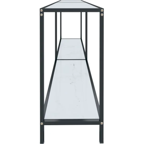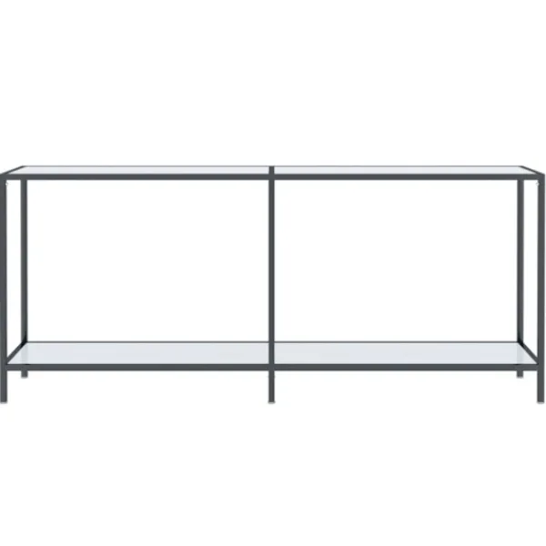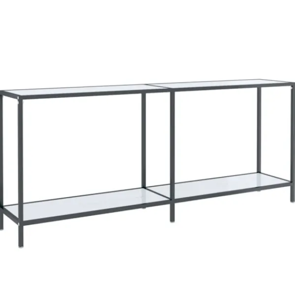 Konsolbordet är tillverkat i härdat glas och pulverlackerat stål, vilket gör det stadigt och hållbart. Det är enkelt att rengöra med en fuktig trasa. Dessutom har det en hylla med extra förvaring.