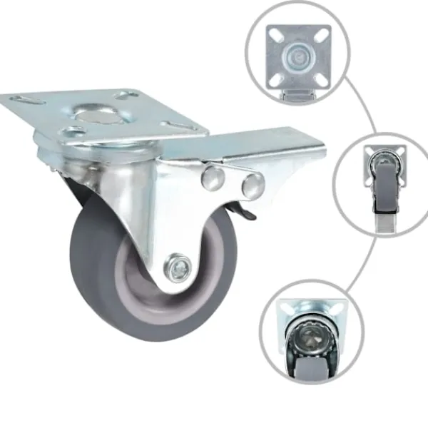 Den här uppsättningen om 24 länkhjul blir ett bra tillbehör för mindre utrustning och möbler såsom arbetsbänkar, vagnar, soffbord, växtställ, bokhyllor, kundvagnar med mera. Hjulen är tillverkade i TPR (termoplastiskt gummi) som kännetecknas av sitt goda stötdämpande vibrationsmotstånd, som gör dem smidiga och tysta. Dessutom skyddar hjulens mjuka yta ditt golv från repor. Ramen i zinkbelagt järn är högst rostbeständig och bidrar därmed till hjulens stadighet. Hälften av hjulen är utrustade med bromsar för flexibel kontroll. Varje hjul har en maximal lastkapacitet på 35 kg. Vid leverans ingår 12 länkhjul och 12 länkhjul med bromsar.