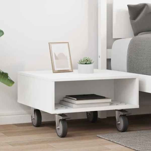 Detta moderna sidobord med hjul är både funktionellt och stiligt, och passar perfekt i vilket vardagsrum som helst. Designat för inomhusbruk, ger det en fräsch känsla till ditt rum med sina rena linjer och minimalistiska stil. Den rektangulära formen smälter lätt in bland möbler, som sängen eller soffan, och har plats för lampor, klockor eller personliga saker. Den konstruerade träytan är både hållbar och snygg och tillför en avslappnad elegans till rummet.
