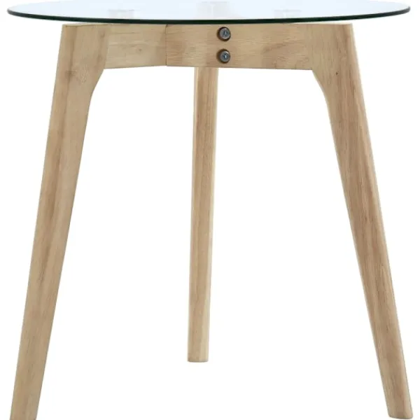 Denna uppsättning små sidobord har en elegant design som kommer att förhöjda den existerande inredningen i ditt rum. Bordsskivorna är tillverkade i förstärkt härdat glas som är starkt, slätt och enkelt att torka av. Du kan ställa dina drickor, vaser, frukter med mera pdå dem. Borden stöds av ben i massiv ek som är mycket stabilt och hållbart. Dessa sidobord har en kompakt, platsbesparande och lätt design och kan enkelt flyttas runt. De kan användas som ett matbord, soffbord eller arbetsbord hemma och på kontoret. Dessa bord är väldigt enkla att montera.