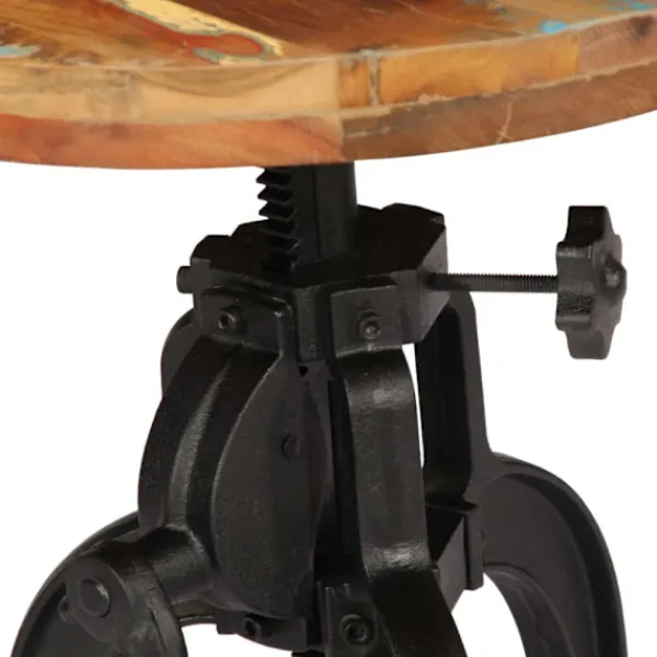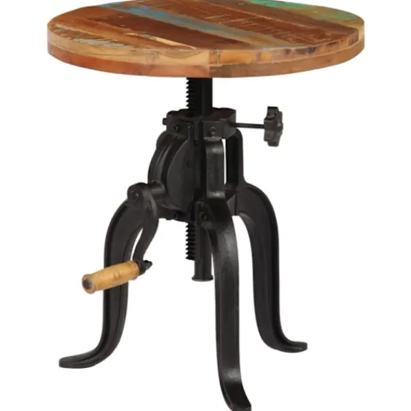 Detta sidobord är tillverkat i massivt återvunnet trä som har samlats in från reglar, golv och balkar från gamla byggnader som rivits och kan bestå av olika typer av trä såsom furu, teak, björk, ek, ceder, mangoträ, akacia, etc. Detta innebär att återvunnet trä behåller egenskaperna från dessa olika träslag. Återvunnet trä är redan åldrat, vittrat och torkat, så det varken krymper eller böjs. Därför är detta retro soffbord stabilt, hållbart och iögonfallande. Benen i pulverlackerat gjutjärn gör dessutom soffbordet stadigt. Det antika vardagsrumsbordet kan även justeras i höjd från 45 till 62 cm.