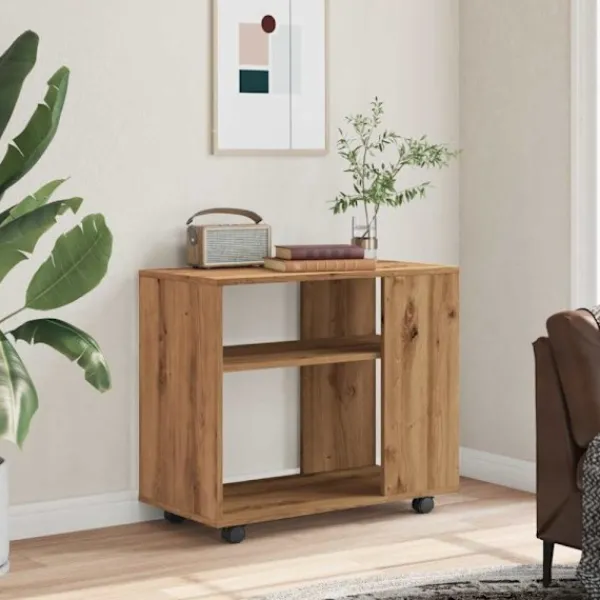 - Lätt att flytta: Detta sidobord, med de medföljande fyra svängbara hjulen, kan enkelt flyttas till önskad plats. De två hjulen är låsbara, vilket håller vagnen på plats och bidrar till stabilitet.