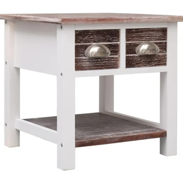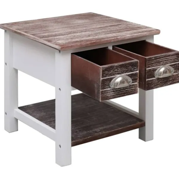 Detta soffbord är tillverkat av paulownia och är hållbart och stadigt. Det har förvaringsplats med 2 lådor och en bottenhylla. Den robusta bordsskivan är en perfekt plats för att visa upp dekorativa föremål, fotoramar eller krukväxter. Det är enkelt att torka av med en fuktig trasa. Sidobordet är enkelt att montera.