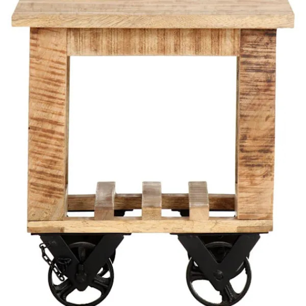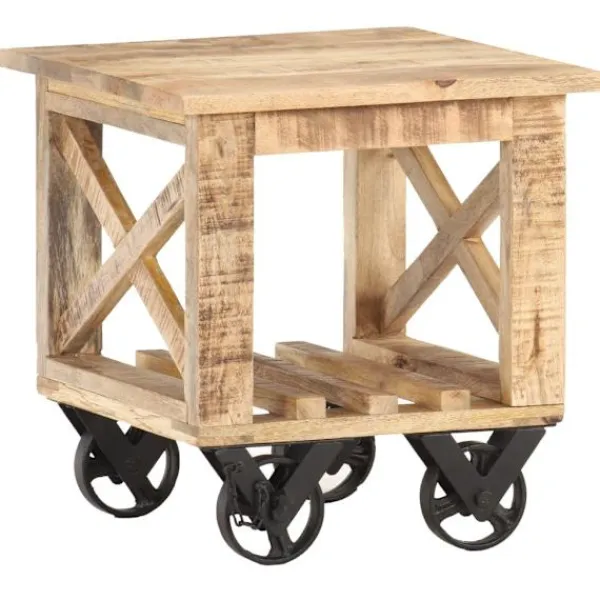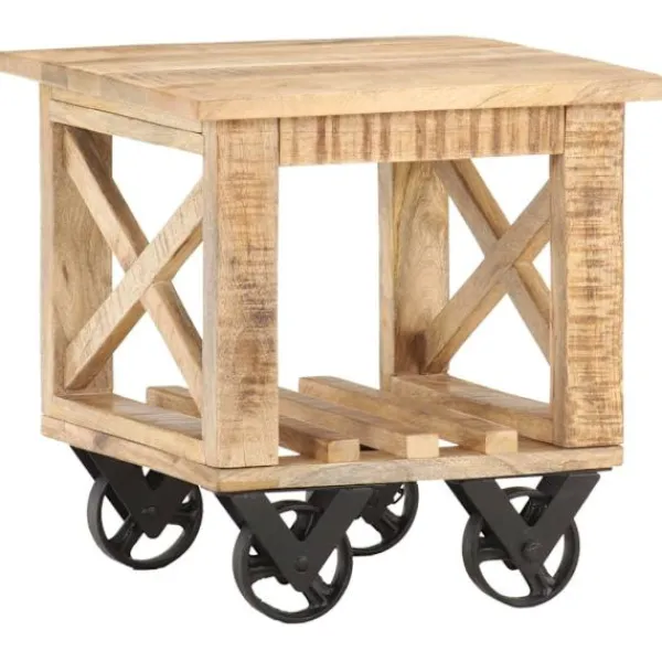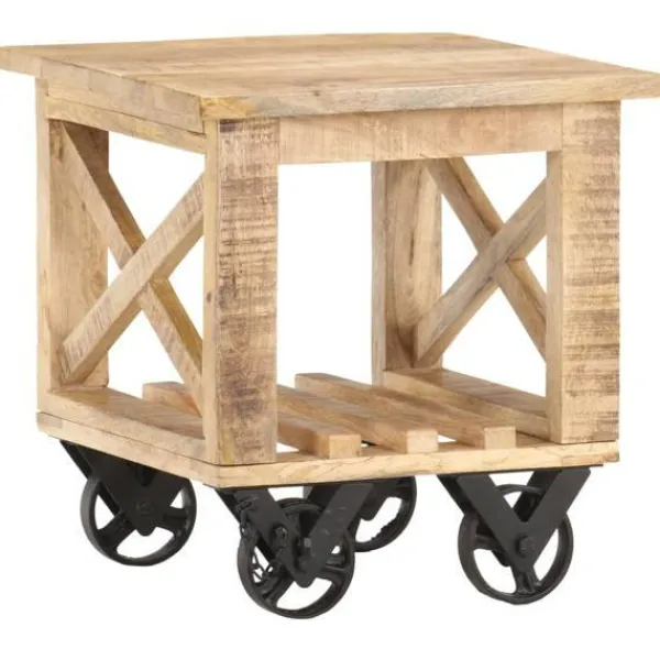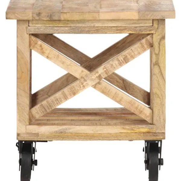Detta sidobord i vintage stil blir ett unikt tillskott i din inredning. Det kan även användas som soffbord, sidobord, laptopbord, osv. Bordet är handgjort i massivt grovt mangoträ som är stabilt, hållbart och vackert. Hantverket bidrar till dess spektakulära retro stil. Varje steg i processen utförs med största omsorg, vare sig det är polering eller lackering. Hantverket och de vackra träådringarna gör varje möbel unik och något olik de andra. Det har 4 mjukt rullande hjul för enkel förflyttning. Bottenhyllan låter dig förvara viktiga saker som böcker, tidskrifter, osv. OBS! Färgerna varierar på möblerna vilket gör varje sidobord unikt. Leveransen är slumpmässig.