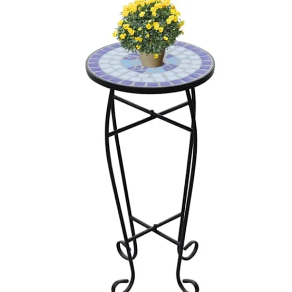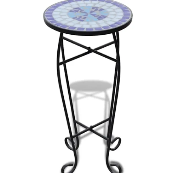 Detta växtbord har en bordsskiva täckt av väderbeständig mosaik och elegant svängda ben. Det kommer säkerligen att bli ett riktigt blickfång i din trädgård, balkong, terrass, etc.