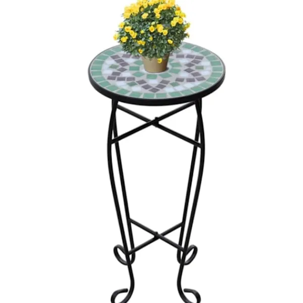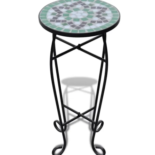 Detta växtbord har en bordsskiva täckt av väderbeständig mosaik och elegant svängda ben. Det kommer säkerligen att bli ett riktigt blickfång i din trädgård, balkong, terrass, etc.