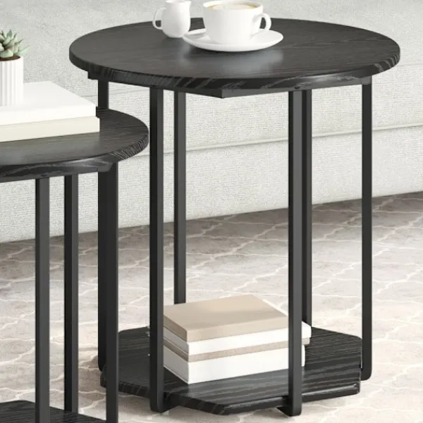 - Ingår komponenter: Borden har brädhyllor för enkel förvaring, perfekta för att visa böcker eller dekorationer. De metalliska ramarna ger ett extra stöd och passar in i den industriella stilen, vilket gör borden både praktiska och snygga.