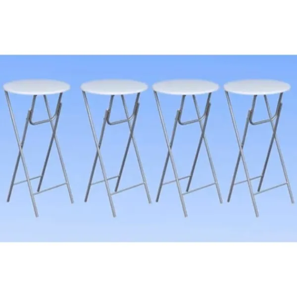 Detta ståbord har en gräddvit bordskiva som är tillverkad av trä. Ståborden är väldigt praktiska och platsbesparande eftersom de är lätta att fälla ihop när de inte används. Uppsättningen innehåller fyra barbord som är tillverkade av hög kvalitet med en robust konstruktion.