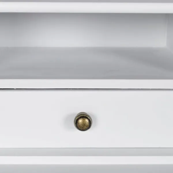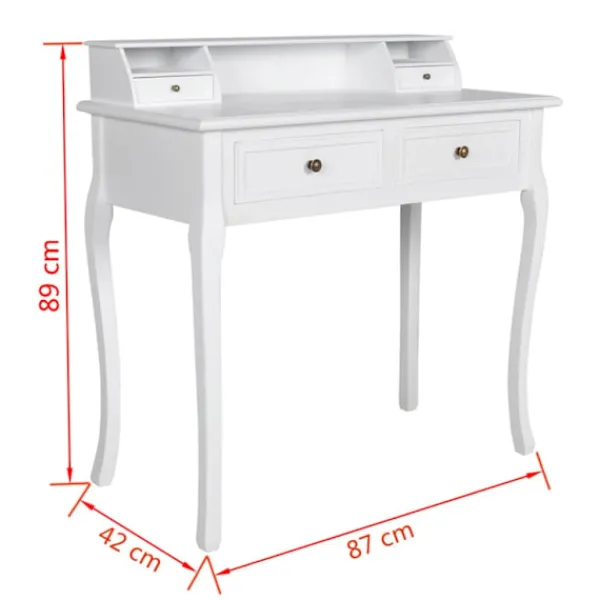Detta eleganta sminkbord är tillverkat av massivt trä och målat i en vacker ljus vit färg. Toalettbordet har två stora lådor och två små lådor samt en extra hylla som ger tillräckligt med utrymme för smink, parfym, smycken etc. Spegel är ej inkluderad.