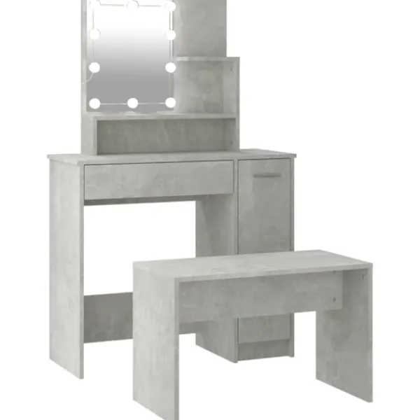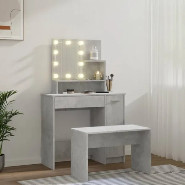 Detta trendiga sminkbord ger ditt sovrum ett tidlöst, elegant utseende. Sminkbordet med LED är ett utmärkt komplement till din sovrumsinredning samtidigt som du har din kosmetika nära till hands! Stabilt material: Det konstruerade träet är av exceptionell kvalitet med slät yta och är också starkt, stabilt och fuktbeständigt.Spegel: Sminkbordet med spegel är perfekt för din dagliga skönhetsrutin. Spegeln låter dig ta hand om din hud och den underlättar när du sminkar dig!Gott om förvaringsutrymme: Sminkbordet med pall har gott om utrymme för enkel åtkomst till smink, smycken och vardagliga nödvändigheter.LED-ljus: Sminkbordet har också LED-lampor med USB, som är enkla att byta läge från varmt till kallvitt. LED-lamporna runt spegeln avger ljus.Breda applikationer: Detta sminkbord är lämpligt för olika scener, till exempel ditt sovrum, garderob och alla andra rum du vill ställa det. VARNING:För att förhindra att den välter måste denna produkt användas med den medföljande monteringsanordningen för vägg Observera:Varje produkt levereras med en monteringsmanual i lådan för enkel montering.