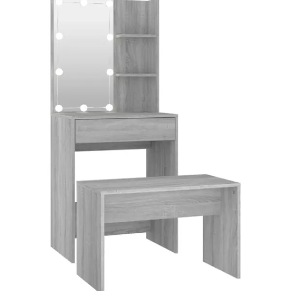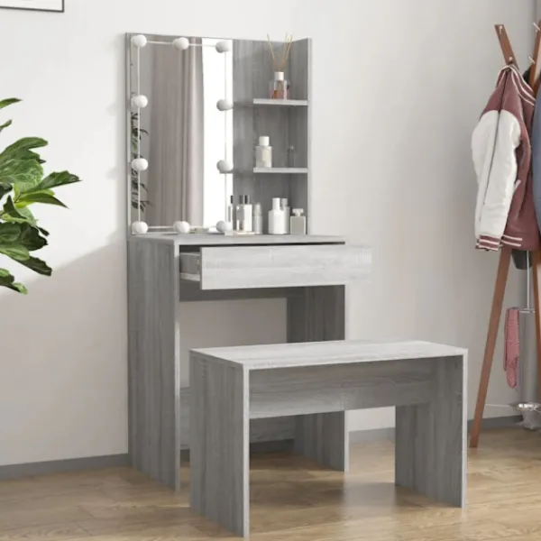 Detta trendiga sminkbord ger ditt sovrum ett tidlöst, elegant utseende. Sminkbordet med LED är ett utmärkt komplement till din sovrumsinredning samtidigt som du har din kosmetika nära till hands!
