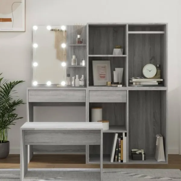 Detta trendiga sminkbord ger ditt sovrum ett tidlöst, elegant utseende. Sminkbordet med LED är ett utmärkt komplement till din sovrumsinredning samtidigt som du har din kosmetika nära till hands!