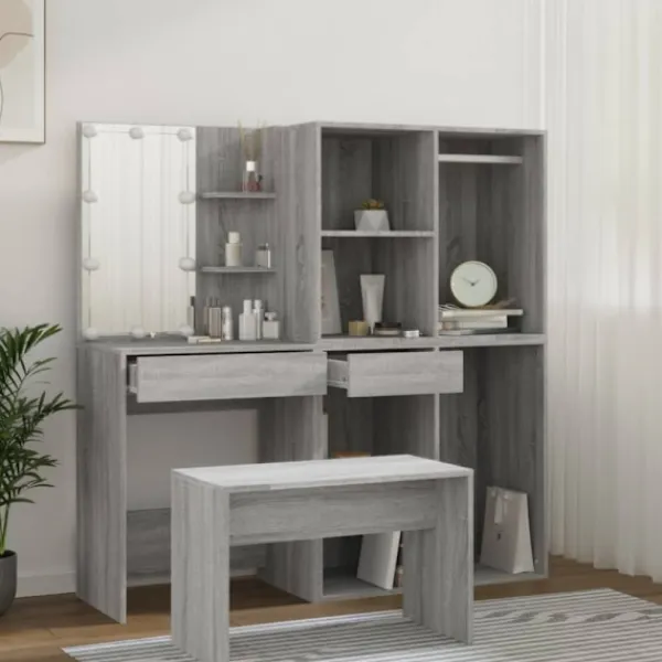 - Gott om förvaringsutrymme: Sminkbordet med pall har gott om utrymme för enkel åtkomst till smink, smycken och vardagliga nödvändigheter.