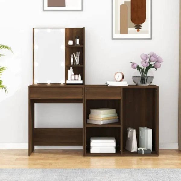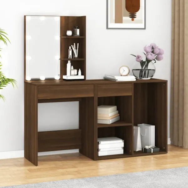 Detta trendiga sminkbord med LED ger ditt sovrum ett tidlöst, elegant utseende. Sminkbordet är ett utmärkt komplement till din sovrumsinredning samtidigt som du har din kosmetika nära till hands!