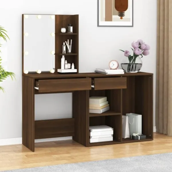 - Gott om förvaringsutrymme: Sminkbordet med belysning har gott om utrymme för enkel åtkomst till smink, smycken och vardagliga nödvändigheter.