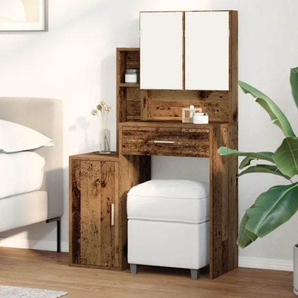 - Konstruktion av konstruerat trä Det här sminkbordet är gjort av konstruerat trä, vilket gör att det har en stadig och hållbar byggkvalitet. Den släta ytan är robust men lätt att sköta, och ser bra ut samtidigt som den är praktisk.