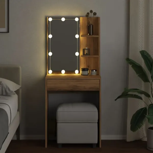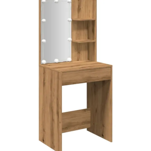 Detta sminkbord blir ett riktigt blickfång i din inredning, tack vare dess raka linjer och asymmetriska form.