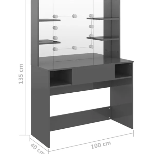 Utför din morgonrutin med stil vid detta eleganta sminkbord! Detta sminkbord, konstruerat av MDF, blir en elegant och modern del av ditt hem. Den har gott om plats för sminkartiklar och håller allt på sin plats. Spegeln är en bra hjälp när du sminkar dig och utstrålar en elegant känsla på bordet. De eleganta LED-lamporna belyser också din skönhet. Obs: Denna produkt har en USB-kontakt, men den certifierade 5V USB-strömkällan ingår inte.