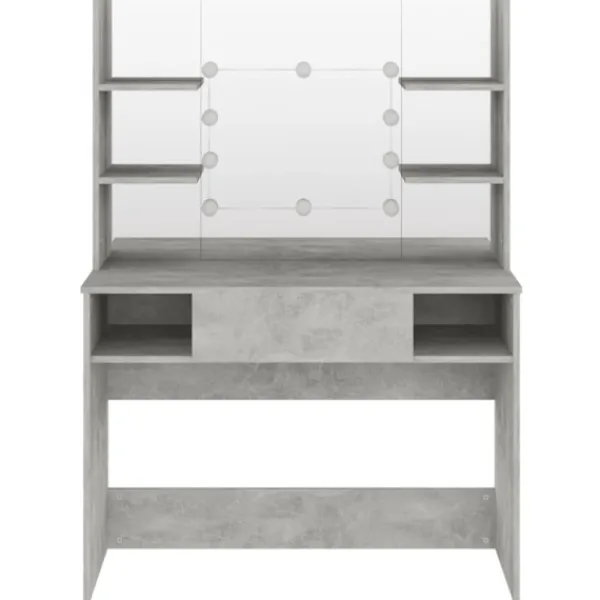 Detta sminkbord, konstruerat av MDF, blir en elegant och modern del av ditt hem. Den har gott om plats för sminkartiklar och håller allt på sin plats. Spegeln är en bra hjälp när du sminkar dig och utstrålar en elegant känsla på bordet. De eleganta LED-lamporna belyser också din skönhet.