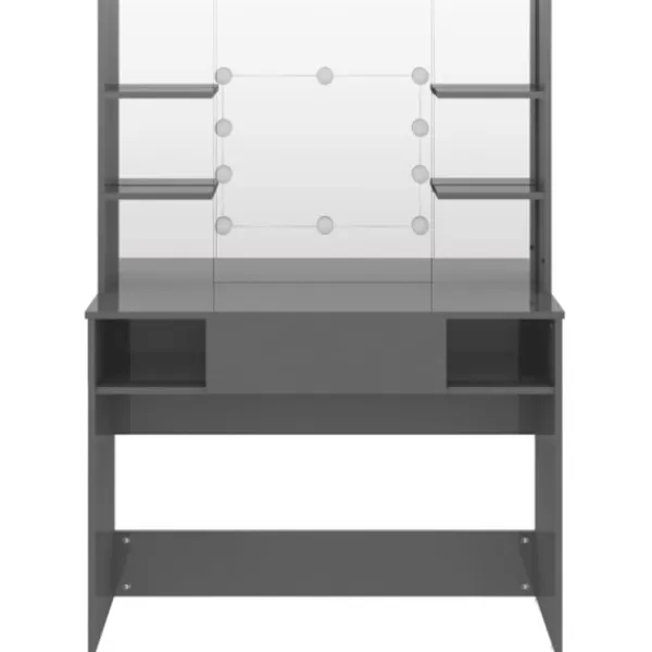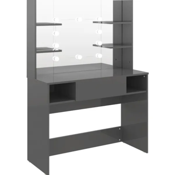 Detta sminkbord, konstruerat av MDF, blir en elegant och modern del av ditt hem. Den har gott om plats för sminkartiklar och håller allt på sin plats. Spegeln är en bra hjälp när du sminkar dig och utstrålar en elegant känsla på bordet. De eleganta LED-lamporna belyser också din skönhet.