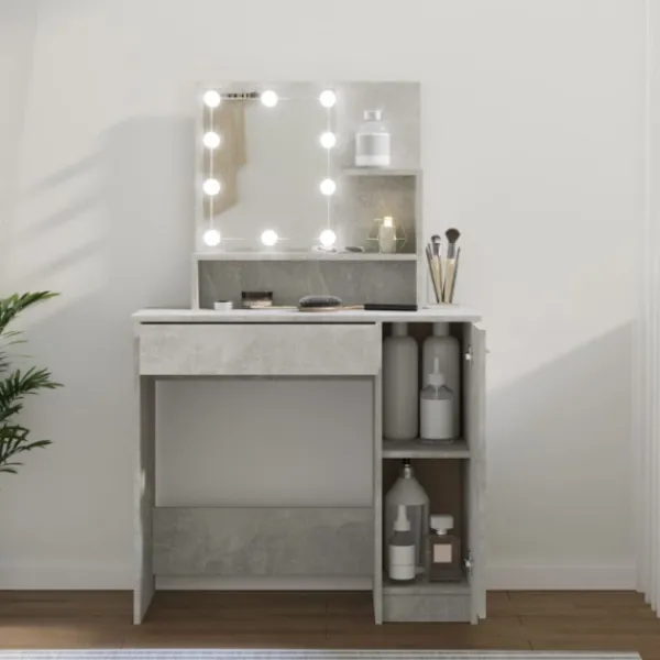 - LED-ljus: Sminkbordet har också LED-lampor med USB, som är enkla att byta läge från varmt till kallvitt. LED-lamporna runt spegeln avger ljus.
