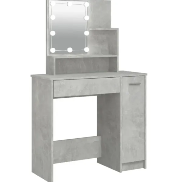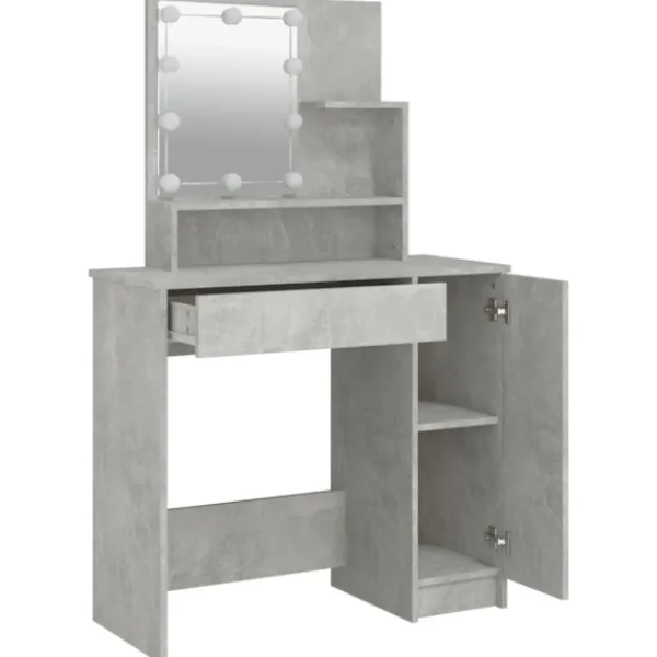 - Gott om förvaringsutrymme: Detta sminkbord har öppna hyllor på bordet, en låda och ett sidoskåp, med gott om förvaringsutrymme för att hålla väsentligheter välorganiserade och inom räckhåll.