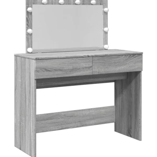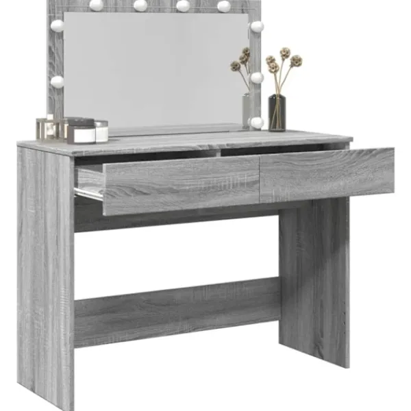 - LED-belysning: Sminkbordet har också LED-lampor med USB, som lätt kan ändra läge från varmt till kallvitt. LED-lamporna runt spegeln ger dig gott om ljus.