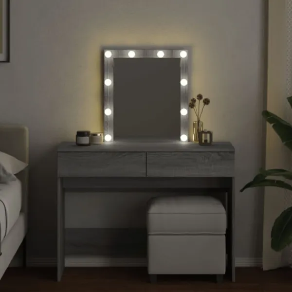 - LED-belysning: Sminkbordet har också LED-lampor med USB, som lätt kan ändra läge från varmt till kallvitt. LED-lamporna runt spegeln ger dig gott om ljus.
