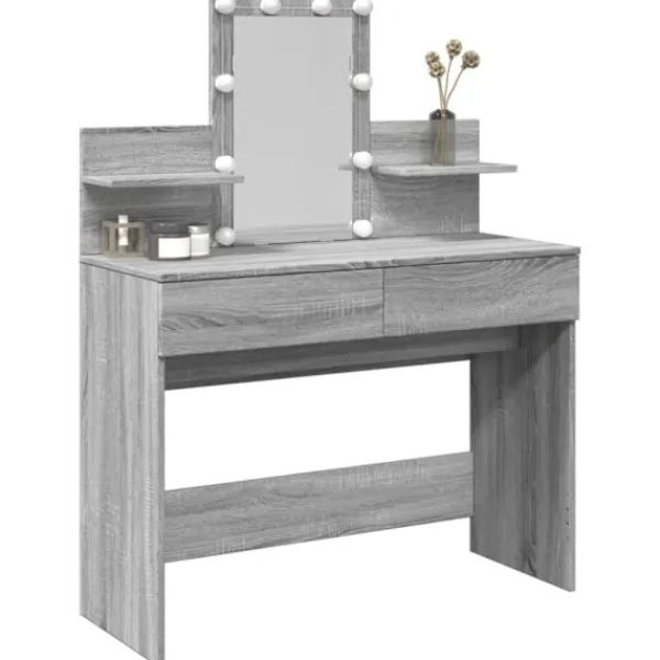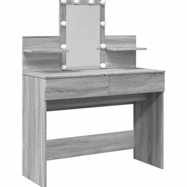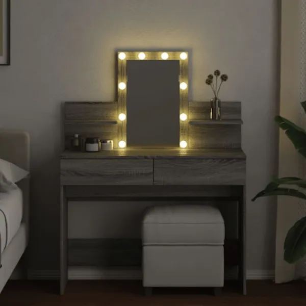 - LED-belysning: Sminkbordet har också LED-lampor med USB, som lätt kan ändra läge från varmt till kallvitt. LED-lamporna runt spegeln ger dig gott om ljus.