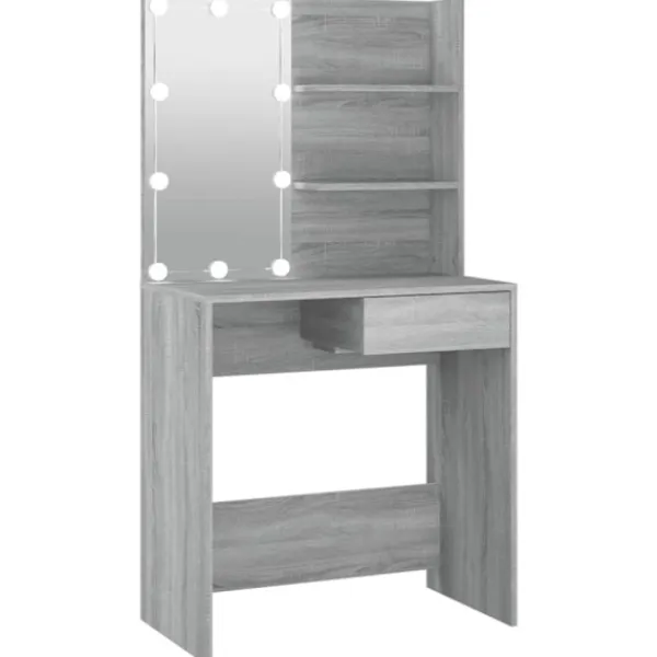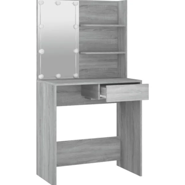 - LED-ljus: Sminkbordet har också LED-lampor med USB, som är enkla att byta läge från varmt till kallvitt. LED-lamporna runt spegeln avger ljus.