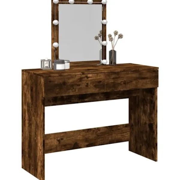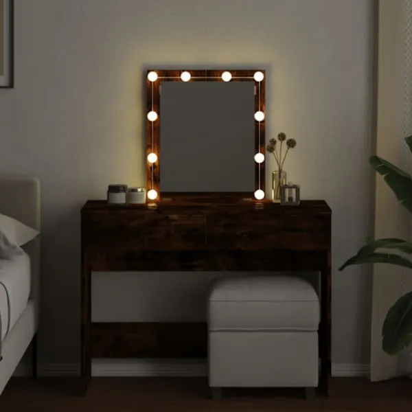 - LED-belysning: Sminkbordet har också LED-lampor med USB, som lätt kan ändra läge från varmt till kallvitt. LED-lamporna runt spegeln ger dig gott om ljus.