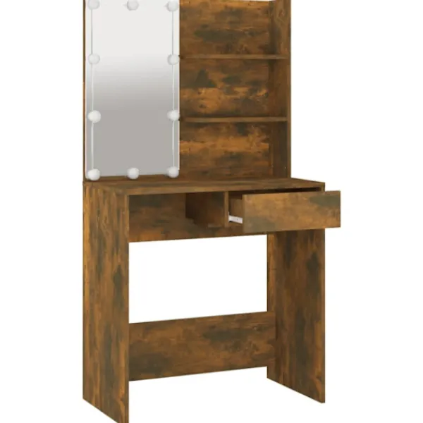 - LED-ljus: Sminkbordet har också LED-lampor med USB, som är enkla att byta läge från varmt till kallvitt. LED-lamporna runt spegeln avger ljus.
