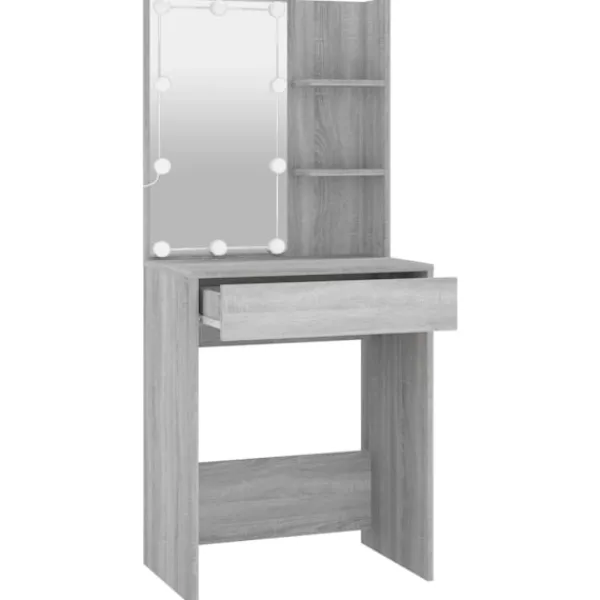 Detta sminkbord blir ett riktigt blickfång i din inredning, tack vare dess raka linjer och asymmetriska form. Hållbart material: Det konstruerade träet är av exceptionell kvalitet med slät yta och är också starkt, stabilt och fuktbeständigt.LED-ljus: Sminkbordet har också LED-lampor med USB, som är enkla att byta läge från varmt till kallvitt. LED-lamporna runt spegeln avger ljus.Gott om förvaringsutrymme: Den rymliga lådan och två öppna hyllorna har tillräckligt med förvaring för att organisera dina föremål och även göra ditt rum städat och rent.VARNING:För att förhindra att den välter måste denna produkt användas med den medföljande monteringsanordningen för vägg Observera:Varje produkt levereras med en monteringsmanual i lådan för enkel montering.