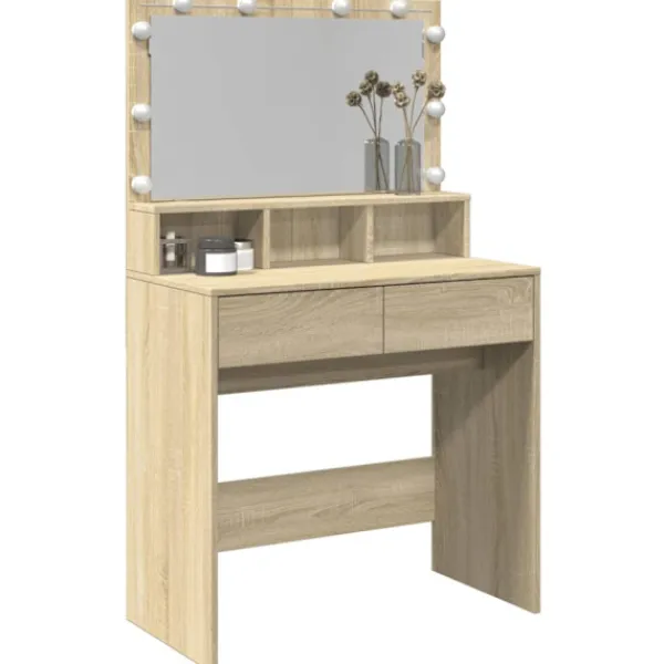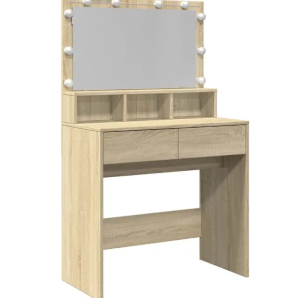 - LED-belysning: Sminkbordet har också LED-lampor med USB, som lätt kan ändra läge från varmt till kallvitt. LED-lamporna runt spegeln ger dig gott om ljus.
