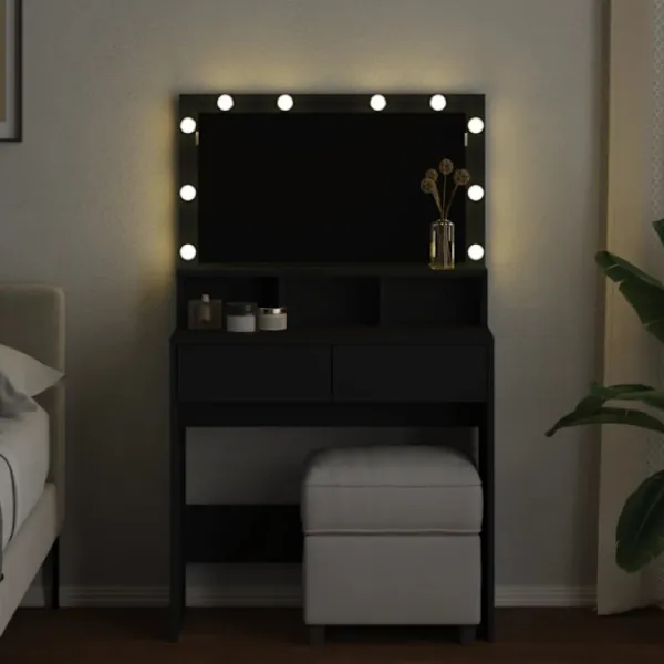 - LED-belysning: Sminkbordet har också LED-lampor med USB, som lätt kan ändra läge från varmt till kallvitt. LED-lamporna runt spegeln ger dig gott om ljus.
