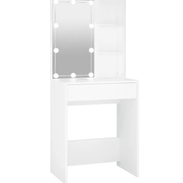 - LED-ljus: Sminkbordet har också LED-lampor med USB, som är enkla att byta läge från varmt till kallvitt. LED-lamporna runt spegeln avger ljus.