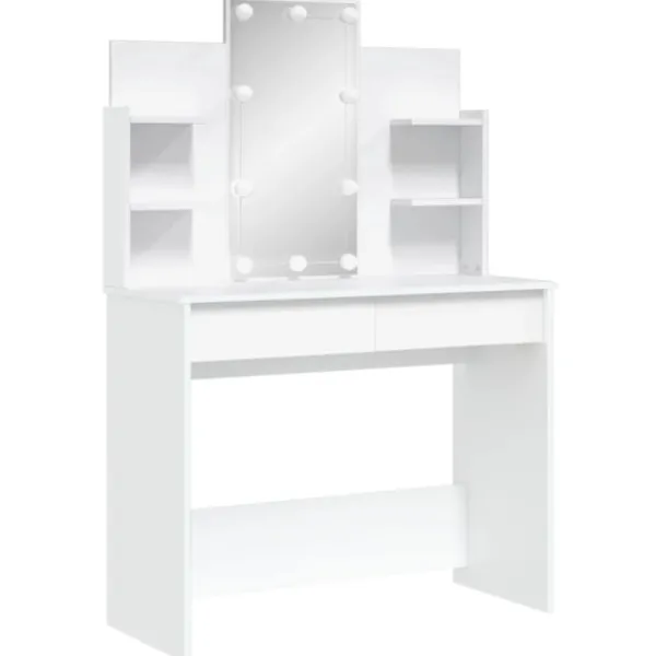 Sminkbordet med spegel och LED-lampor har en tidlös och elegant design och passar perfekt i sovrumsinredning samtidigt som du har dina skönhetsprodukter nära till hands!