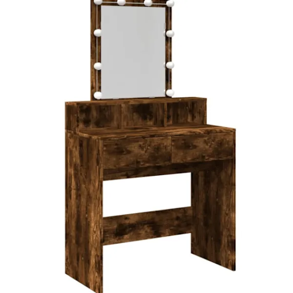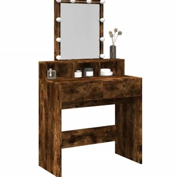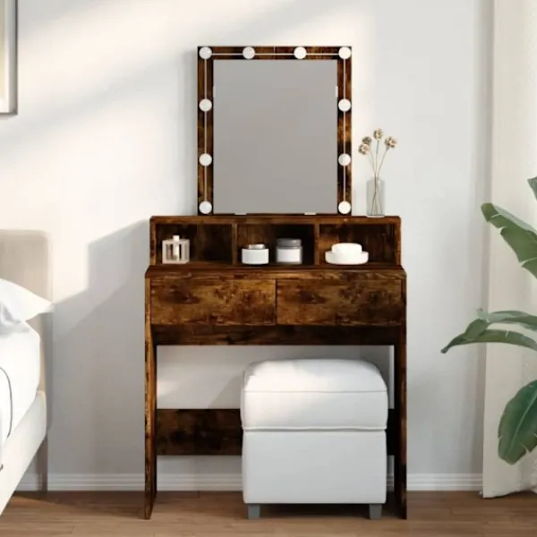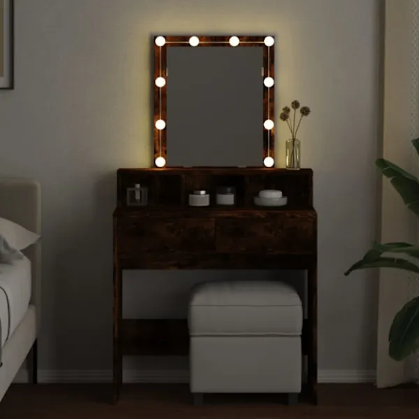 - LED-belysning: Sminkbordet har också LED-lampor med USB, som lätt kan ändra läge från varmt till kallvitt. LED-lamporna runt spegeln ger dig gott om ljus.