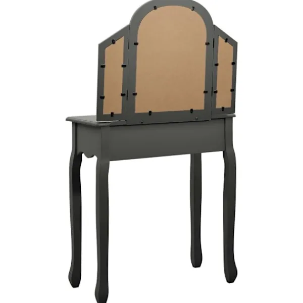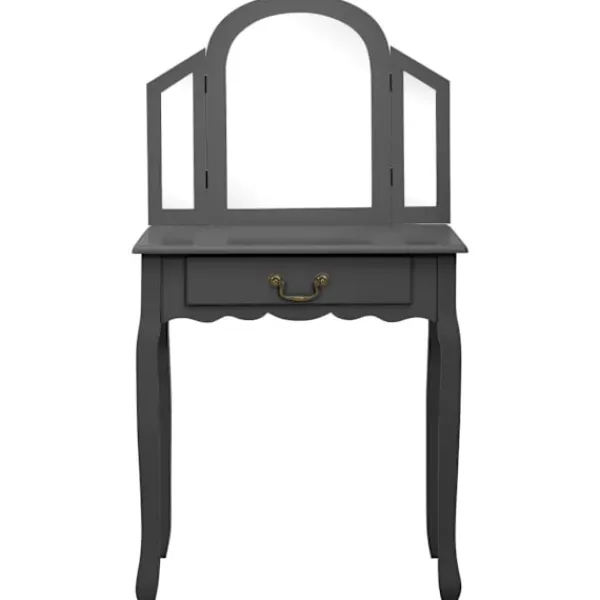 Vårt lyxiga sminkbord med pall är den perfekta platsen att sminka dig på morgonen och förbereda dig för dagen. Det har även fantastiska förvaringsmöjligheter för dina smycken och andra skönhetssaker. Sminkbordet med oval spegel och en pall blir ett riktigt blickfång i sovrummet. Lådan har gott om plats att förvara smink som du använder varje dag på et prydligt sätt. Pallen med tjock stoppning låter dig sitta bekvämt när du gör dig i ordning. När den inte används kan pallen förvaras under bordet för att spara plats. Dessutom är bordet hållbart och lätt att underhålla.