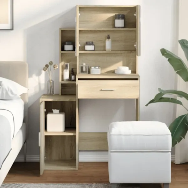 - Gott om förvaring: Sminkbordet med 1 låda och 8 fack har gott om förvaringsutrymme för att hålla dina olika saker välorganiserade och inom räckhåll.