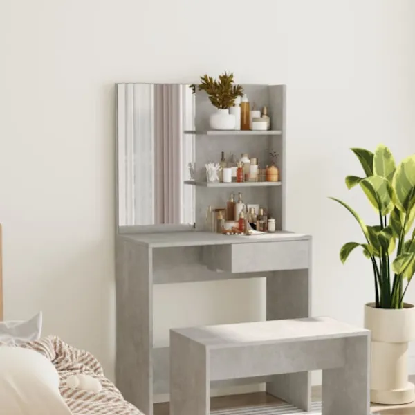 - Spegel: Sminkbordet med spegeln är perfekt för din dagliga skönhetsrutin. Spegeln låter dig ta hand om din hud och den underlättar när du sminkar dig!